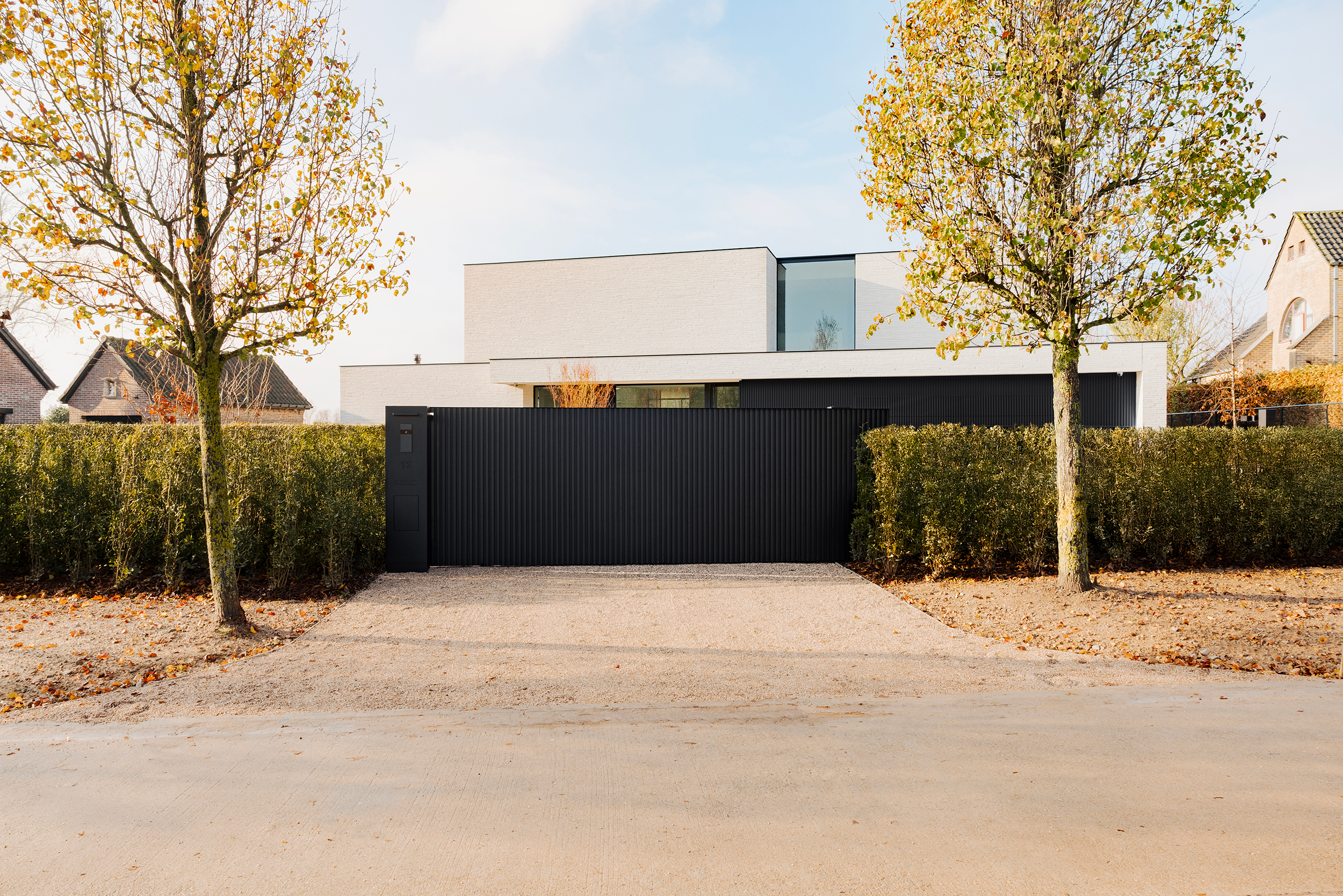 Du casier à colis au vidéophone, en passant par le clavier à code et l’éclairage, tous les composants sont intégrés de manière invisible et élégante dans les colonnes du portail. Cette approche seamless garantit une fonctionnalité maximale, sans aucune surcharge visuelle.