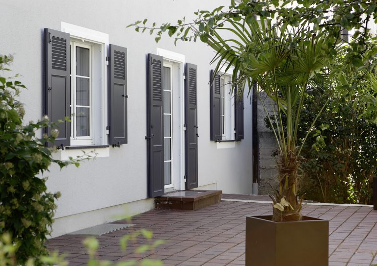 Découvrez notre gamme de volets battants en aluminium Ehret, disponibles en versions fonctionnelles ou décoratives. Entièrement sur mesure, ils s’adaptent à chaque façade, quel que soit le style architectural.